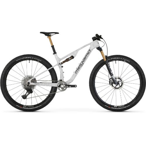 La bicicleta MEGAMO 29 TRACK 01 es una bicicleta de montaña que presenta un cuadroCuadro Track Full Carbon Construction FSC Technology BB92 Carbon Swingarm Boost 12x148mm SuperLight version y horquilla Fox 34 SL Factory StepCast Kashima 130mm. Esta bicicleta incorpora una transmisión Shimano XTR Di2 M9250 de 12 velocidades, así como frenos hidráulicos Combo Shimano XT 8200 + MT805, tija telescopica Fox Transfer SL Kashima with internal cable routing, manillar Integrado Carbono Megamo y ruedas DT Swiss XRC 1200 Carbon 30.