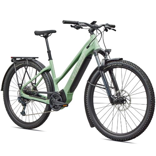 La bicicleta eléctrica SPECIALIZED TURBO TERO 5.0 ST EQ es ideal para ciclistas que buscan potencia y control en todo tipo de terrenos. Su cuadro E5 Aluminum, con batería integrada y cableado interno, ofrece rigidez y compatibilidad con portaequipajes. El motor Specialized 2.2 de 250 W y 90 Nm, combinado con el grupo SRAM GX Eagle de 12 velocidades, que asegura cambios precisos y un pedaleo fluido. Además, sus frenos hidráulicos SRAM DD8 proporcionan una frenada potente y segura, mientras que la horquilla RockShox Recon Silver RL mejora la absorción de impactos y la estabilidad en senderos técnicos.