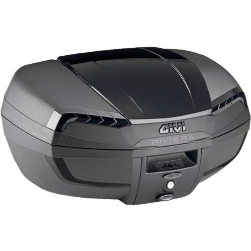 El baúl GIVI E46 RIVIERA es un baúl central de alta gama con fijación MONOLOCK®, que presenta un diseño moderno y aerodinámico con formas redondeadas. Este baúl ha sido creado utilizando un sistema de moldes con relieves que permite obtener una estructura más rígida en toda la línea de contacto entre las dos carcasas. Ofrece una impermeabilidad perfecta, sometido a pruebas tanto en laboratorio como en carretera con tormenta y granizo. Además, incluye de serie una alfombrilla blanda extraíble, fijada al fondo con cierre autoadherente rápido.