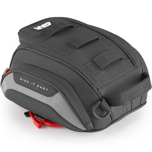 La bolsa de depósito GIVI EASY01 con sistema Tanklock® ofrece un diseño práctico, compacto y seguro, ideal para el uso diario y el mototurismo. Fabricada con materiales resistentes y acabados funcionales, permite una fijación flexible gracias a la posibilidad de colocar el sistema Tanklock en cuatro posiciones distintas. Incorpora bolsillos exteriores, salida de cable para dispositivos electrónicos, sistema M.O.L.L.E., funda resistente al agua e inserciones reflectantes. Incluye correa de seguridad convertible en bandolera y asa para un transporte cómodo fuera de la moto.