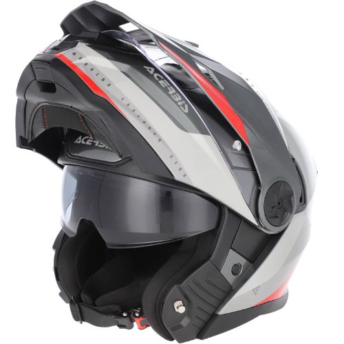 El casco ACERBIS RIDER es un casco modular trail que presenta una calota exterior fabricada en material termoplástico con visera solar integrada operada por un control deslizante. Su acolchado interior es hipoalergénico, extraíble, lavable y transpirable. Este casco dispone de protector contra respiración extraíble y protector de barbilla extraíble. Además, cuenta con cierre rápido microajustable y ofrece la posibilidad de utilizarse en configuración integral sin visera.
