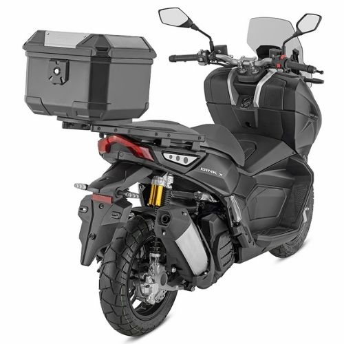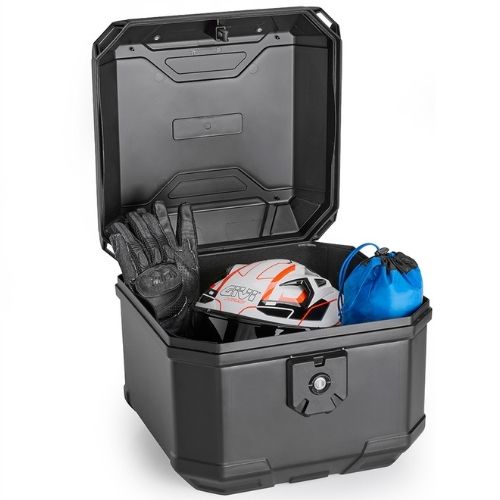 La maleta GIVI B38N Bernina Monolock® es un baúl central pensado para quienes buscan estilo, resistencia y funcionalidad en un solo producto. Fabricado en tecnopolímero de alta resistencia con acabado aluminio, combina solidez y elegancia, adaptándose a motos y scooters. Su diseño angular aporta una línea moderna y una estructura rígida. El interior con revestimiento de fieltro protege el contenido y permite alojar un casco modular talla XXL. Incluye parrilla, kit de fijación, cierre Crablock y garantiza una elevada resistencia al agua.