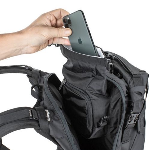 La MOCHILA KRIEGA TRAIL 18 ADVENTURE BACKPACK CAMO utiliza el innovador arnés Quadloc-Lite de Kriega, combinado con materiales de alta tecnología para satisfacer las necesidades de los motoristas más aventureros. Está compuesta de tres secciones: un compartimento trasero de 7 litros con acceso con cremallera para almacenamiento pesado. Esta área también tiene un pequeño bolsillo interno impermeable para un teléfono y la cartera, combinado con el cuerpo principal con cierre enrollable que proporciona un total de 12 litros de almacenamiento 100% impermeable.