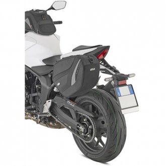 El SOPORTE ALFORJAS-STEALTH P/EASY12 GIVI STL1215 es un soporte retráctil específico en acero y tecnopolímero reforzado con fibra de vidrio para alforja izquierda EASY12L (Línea Easy-T). No se puede montar en combinacion con el adaptador posterior SR1215. A combinar con la bolsa Easy12L.